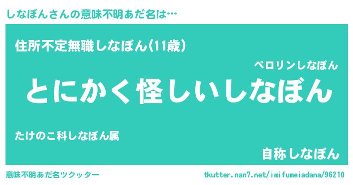 | 女子向けラノベタイトル風あだ名 | 『シンデレラしなぼん家の靴箱館』 |
