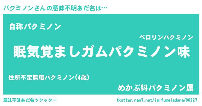 | 男性向けラノベタイトル風あだ名 | 『ノーゲーム・ノーパクミノン』 |
