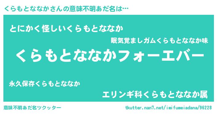| 女子向けラノベタイトル風あだ名 | 『くらもとななかの雑貨屋さん』 |