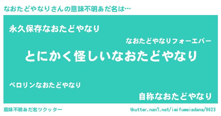 | 胡散臭い通販商品みたいなあだ名 | 『信頼と実績のサプリメント…その名も「なおたどやなり」』 |