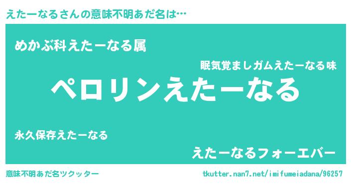 女子向けラノベタイトル風あだ名 | 『(仮)えたーなるのやんごとなき事情』 |