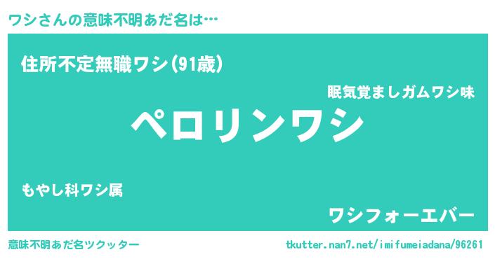 | ポケモン風あだ名 | 『ワシチュウ』『ワシゴンZ』 |