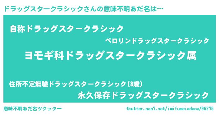 | ヒーロー風カッコイイあだ名 | 『究極戦士ドラッグスタークラシック』 |