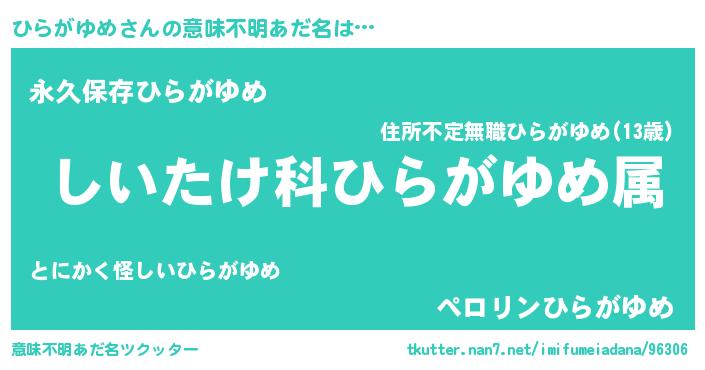 | 男性向けラノベタイトル風あだ名 | 『ヒラガユメスレイヤー』 |