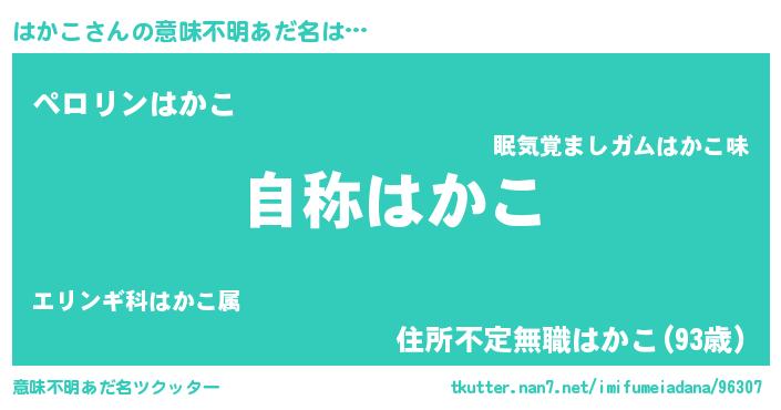 | 欧米人風あだ名 | 『はかこ・ステッグマイヤー』 |
