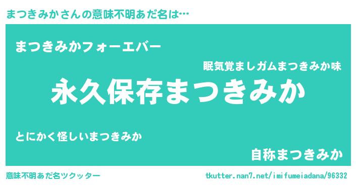 | 男性向けラノベタイトル風あだ名 | 『まつきみかという概念が存在しない退屈な世界 』 |
