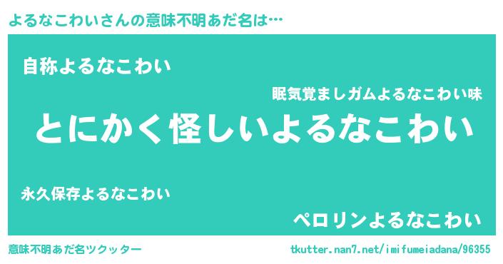| 胡散臭い通販商品みたいなあだ名 | 『信頼と実績のネックレス…その名も「よるなこわい」』 |