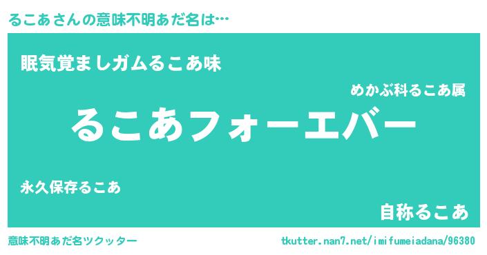 | 女子向けラノベタイトル風あだ名 | 『るこあの雑貨屋さん』 |