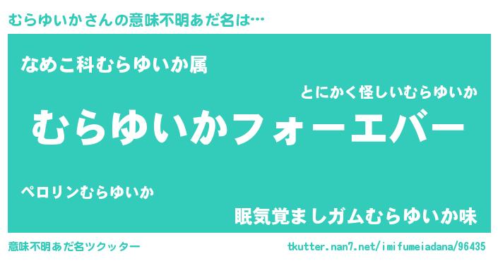 | 女子向けラノベタイトル風あだ名 | 『むらゆいかの雑貨屋さん』 |