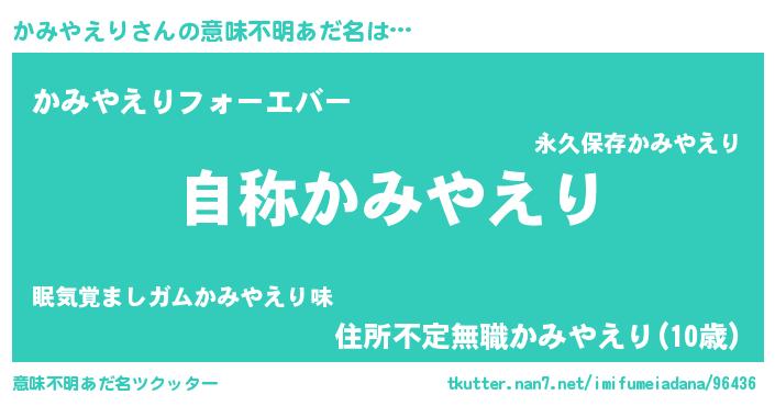 | 男性向けラノベタイトル風あだ名 | 『Re:かみやえりから始める異世界生活』 |