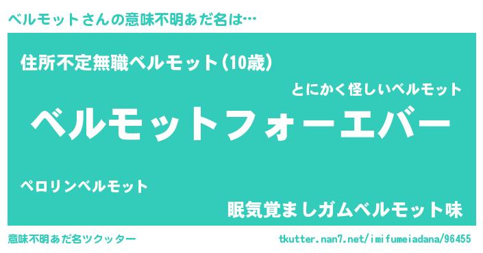 | ファンタジー風あだ名 | 『エターナルベルモットー』『ベルフェル』 |