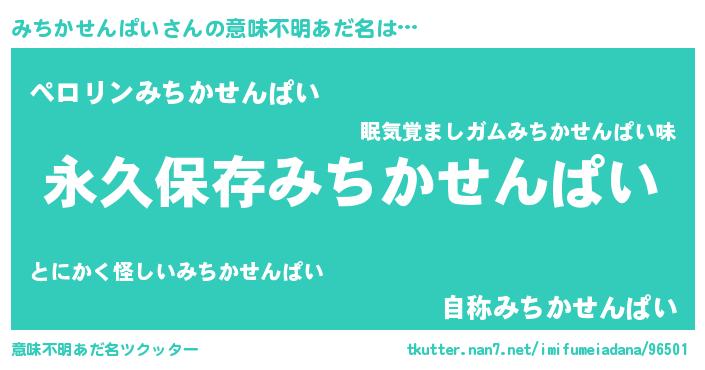 | 胡散臭い通販商品みたいなあだ名 | 『来世でも幸せになれる水素水…その名も「みちかせんぱい」』 |