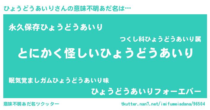 | 男性向けラノベタイトル風あだ名 | 『ひょうどうあいりに滅ぼされるだけの簡単なお仕事です』 |