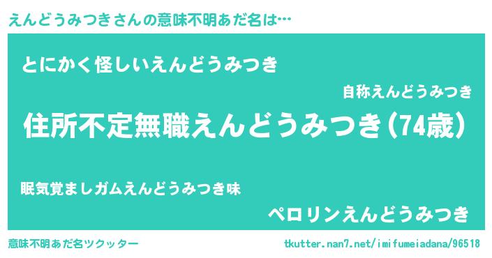 | 男性向けラノベタイトル風あだ名 | 『魔弾の王とえんどうみつき』 |