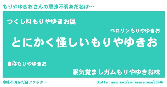 | 男性向けラノベタイトル風あだ名 | 『ダンジョンにもりやゆきおを求めるのは間違っているだろうか』 |