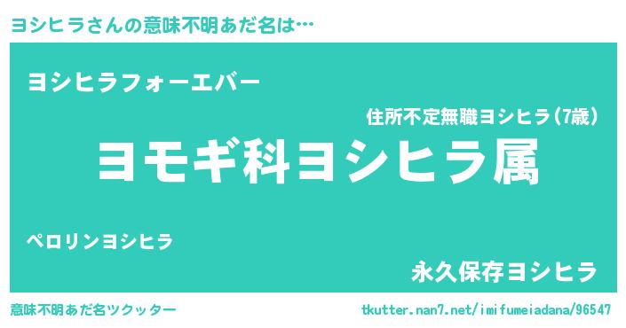 | 男性向けラノベタイトル風あだ名 | 『ヨシヒラ~年齢イコール彼女いない歴の魔法使い~』 |