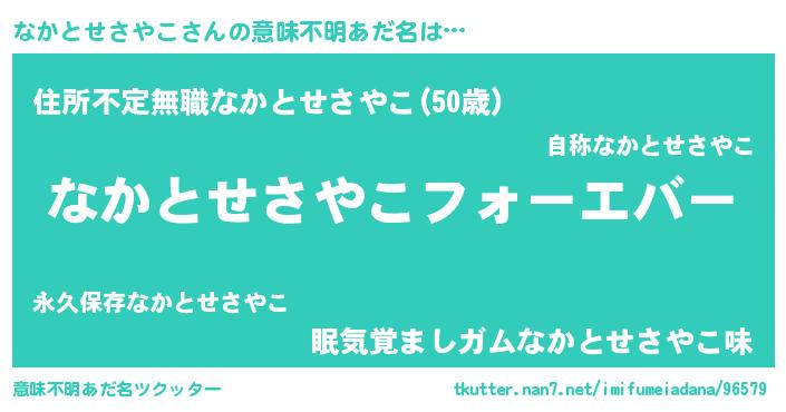 | 男性向けラノベタイトル風あだ名 | 『やはりなかとせさやこの青春ラブコメはまちがっている 』 |