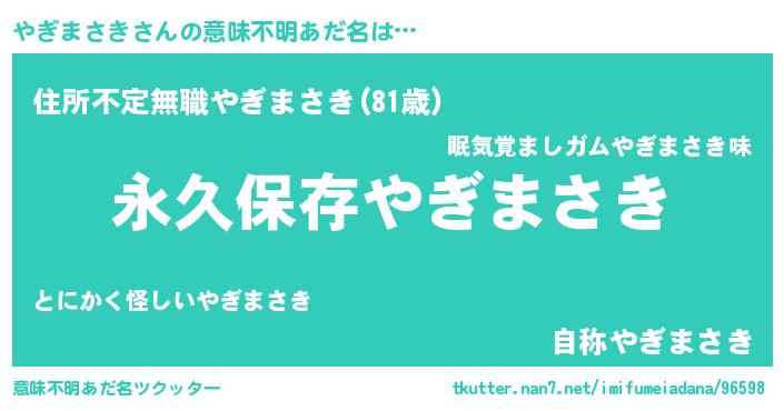 | 男性向けラノベタイトル風あだ名 | 『やぎまさきという概念が存在しない退屈な世界 』 |