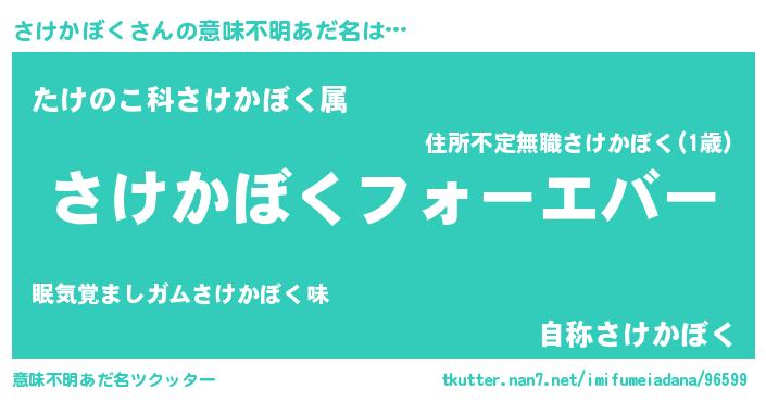 | ファンタジー風あだ名 | 『エターナルサケカボクー』『ゼサケトゥ』 |