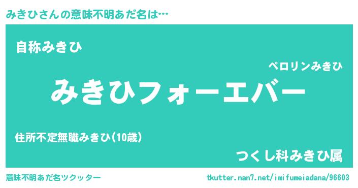 | 女子向けラノベタイトル風あだ名 | 『みきひの雑貨屋さん』『闇のみきひ』 |