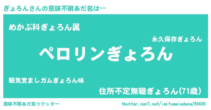 | 男性向けラノベタイトル風あだ名 | 『ぎょろんの憂鬱』『ギョロンスレイヤー』 |