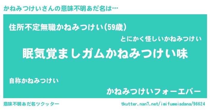 | 男性向けラノベタイトル風あだ名 | 『かねみつけいに滅ぼされるだけの簡単なお仕事です』 |