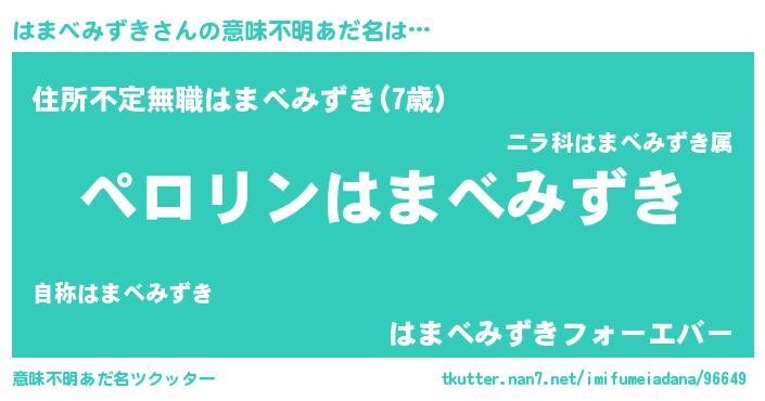 | ヒーロー風カッコイイあだ名 | 『スーパーハマベミズキ』『仮面ハマダー』 |