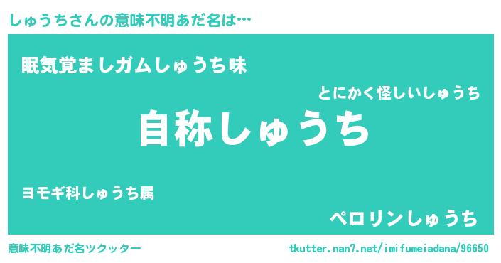 | ヒーロー風カッコイイあだ名 | 『ウルトラ戦士シュウチ』『銀牙騎士シュ』 |