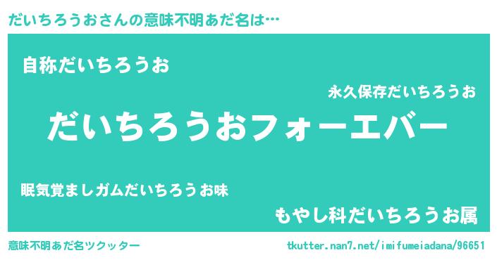 | 欧米人風あだ名 | 『だいちろうお・ステッグマイヤー』 |