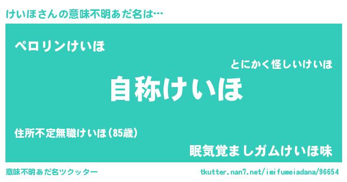 | ヘコむあだ名 | 『けいふぇ~』『けいお』『酢こんぶ』 |