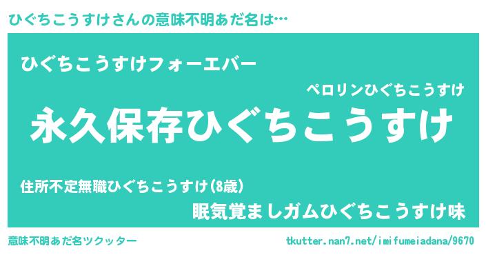 | 男性向けラノベタイトル風あだ名 | 『ひぐちこうすけに滅ぼされるだけの簡単なお仕事です』 |