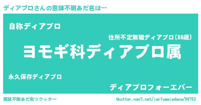 | 男性向けラノベタイトル風あだ名 | 『うちのディアブロが世界を掌握している!』 |