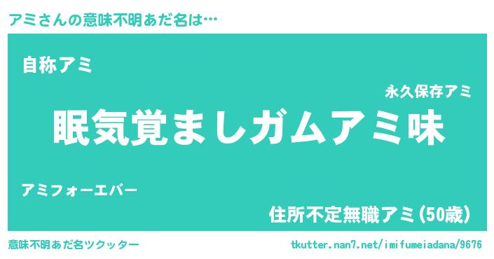 | 男性向けラノベタイトル風あだ名 | 『ノーゲーム・ノーアミ』 |