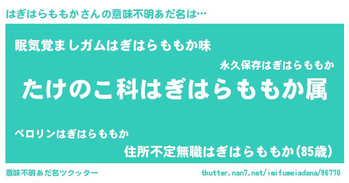| 料理風あだ名 | 『はぎはらももかごはん』 |