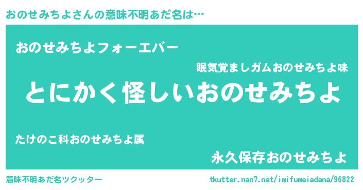 | 胡散臭い通販商品みたいなあだ名 | 『伝統あるサプリメント…その名も「おのせみちよ」』 |