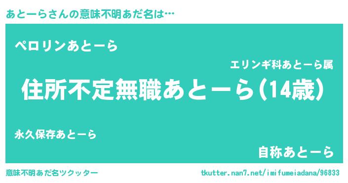 | 男性向けラノベタイトル風あだ名 | 『魔弾の王とあとーら』『あとーらの憂鬱』 |