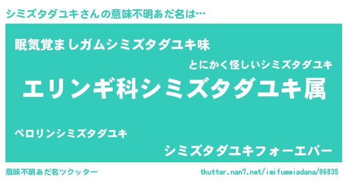 | 男性向けラノベタイトル風あだ名 | 『シミズタダユキスレイヤー』 |