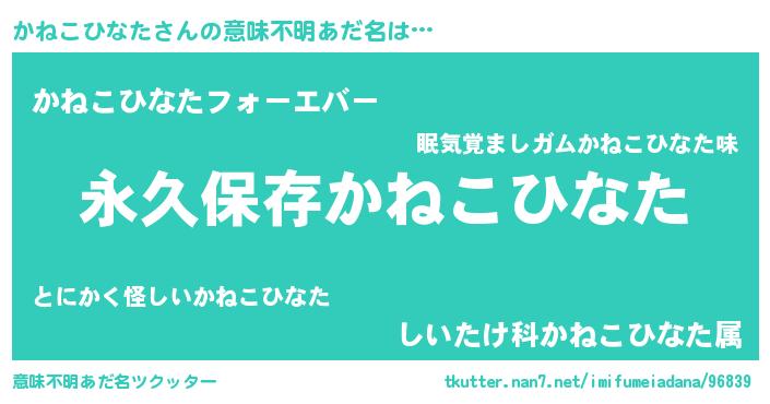 | 胡散臭い通販商品みたいなあだ名 | 『来世でも幸せになれる水素水…その名も「かねこひなた」』 |