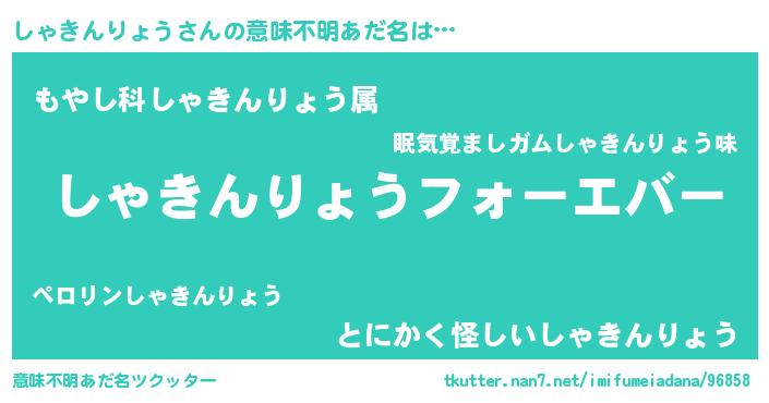 | ファンタジー風あだ名 | 『エターナルシャキンリョウー』 |