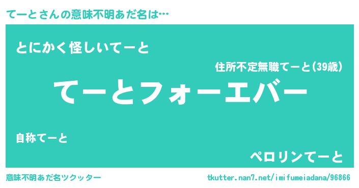 | 女子向けラノベタイトル風あだ名 | 『てーとの婚約者』『てーと様がみてる』 |
