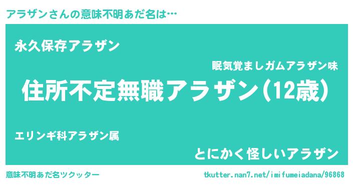 | ポケモン風あだ名 | 『アーライ』『ゼニアラ』『アラゴンZ』 |