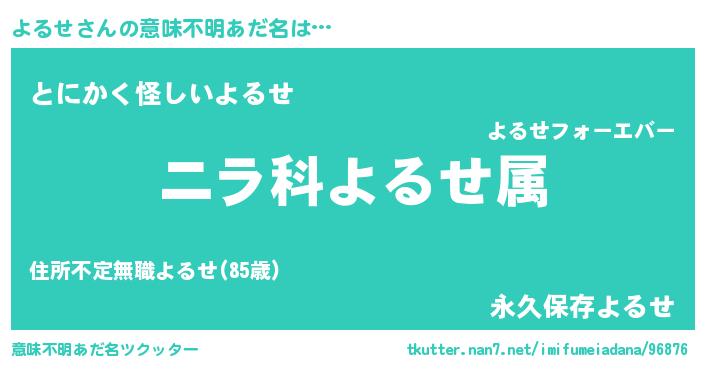 | ヘコむあだ名 | 『よるお』『よるせ(震え声)』 |