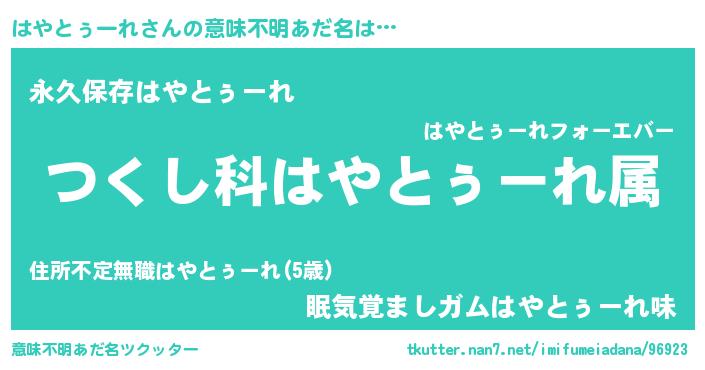 | 欧米人風あだ名 | 『トリンドルはやとぅーれ』 |