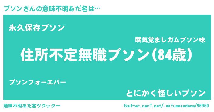 | ポケモン風あだ名 | 『ブーソイ』『ブソゴンZ』『ゼニブソ』 |