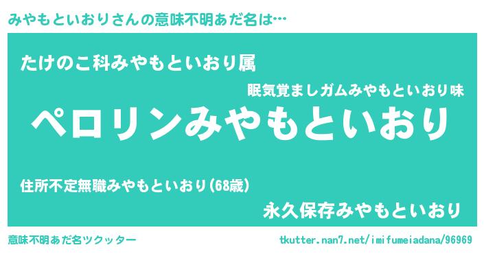 | 胡散臭い通販商品みたいなあだ名 | 『必ず成功するブレスレット…その名も「みやもといおり」』 |