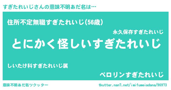 | 欧米人風あだ名 | 『ウサインすぎたれいじ』 |
