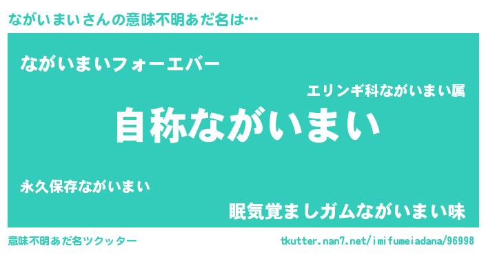 男性向けラノベタイトル風あだ名 | 『魔法科高校のながいまい』 |