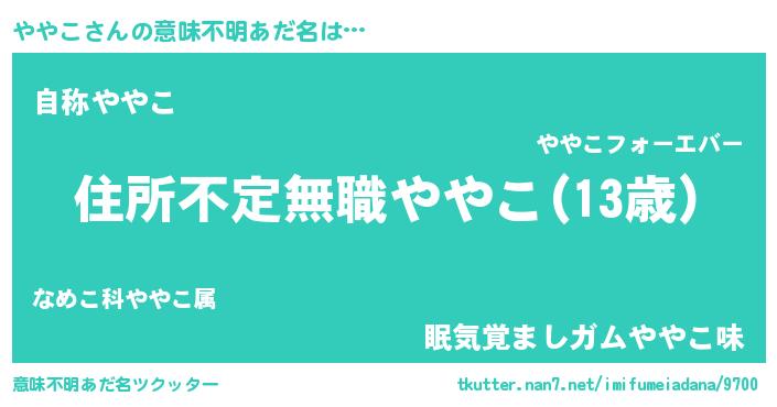 | ヒーロー風カッコイイあだ名 | 『仮面ヤヤダー』『サイバー戦士ヤヤコ』 |