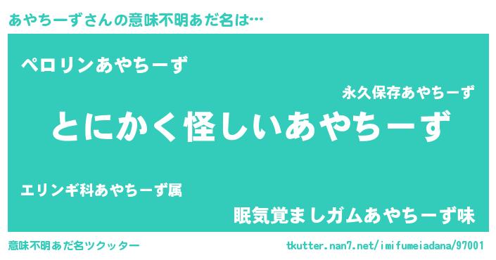 | 胡散臭い通販商品みたいなあだ名 | 『信頼と実績のサプリメント…その名も「あやちーず」』 |