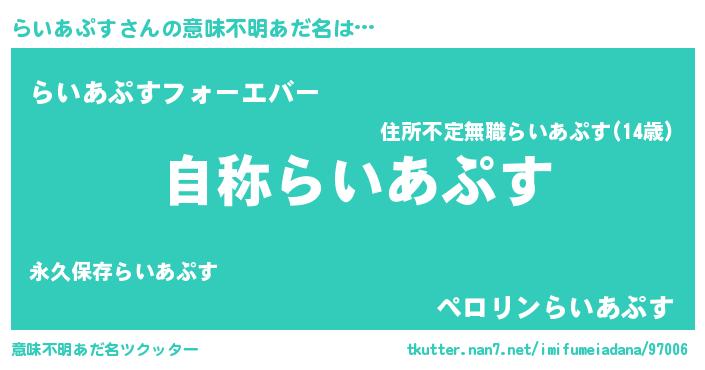 | 肩書あだ名 | 『らいあぷす総統』『らいあぷす大統領』 |